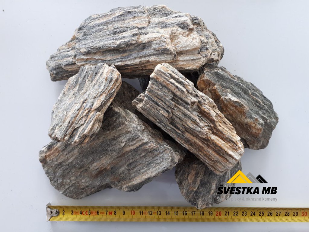 Jedná se o přírodní lámaný kámen, těžený v lomu, který se třídí dle velikostí.