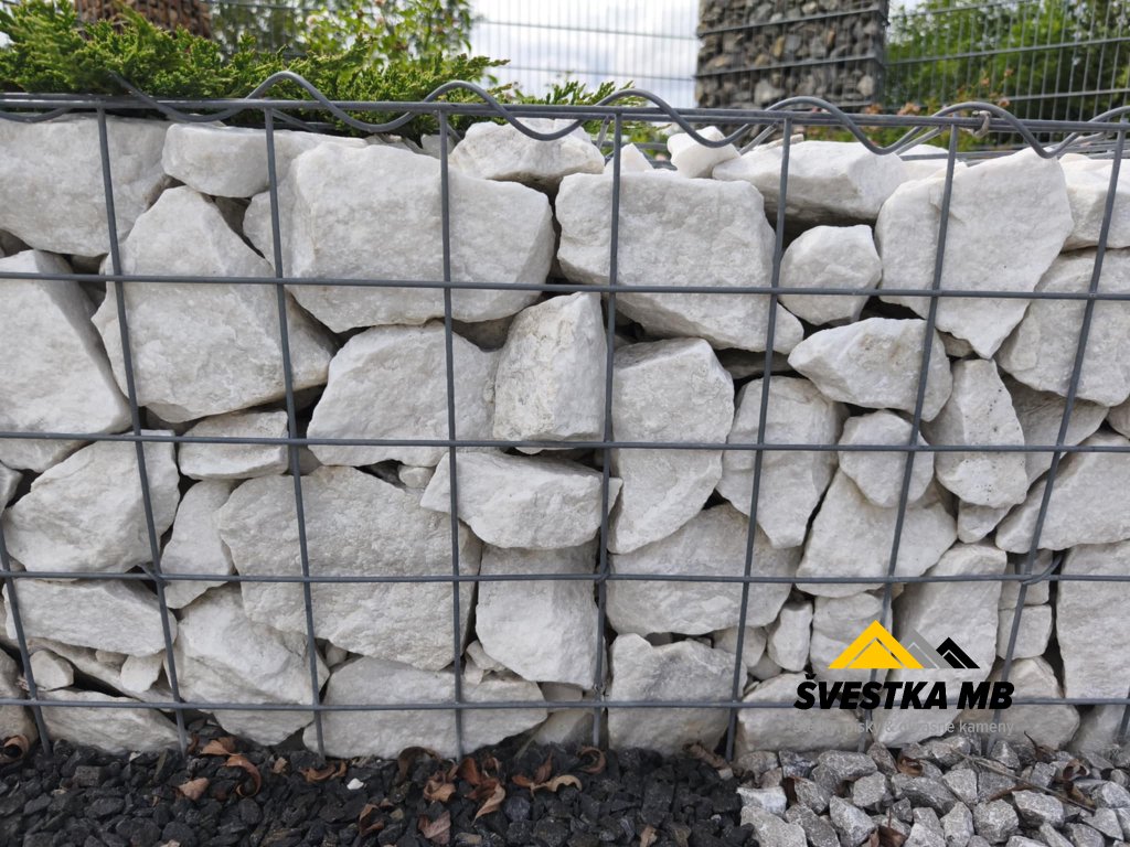Štěrk (drť) bílé barvy o velikosti 32-90 mm. Vhodný do záhonů, do gabionů.