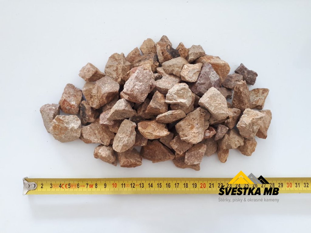 Štěrk (drť) okrové barvy o velikosti 16-32 mm. Vhodný do záhonů.