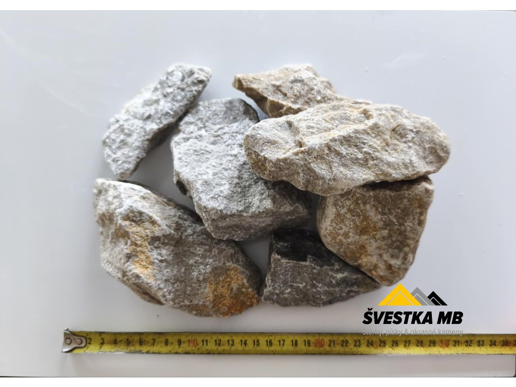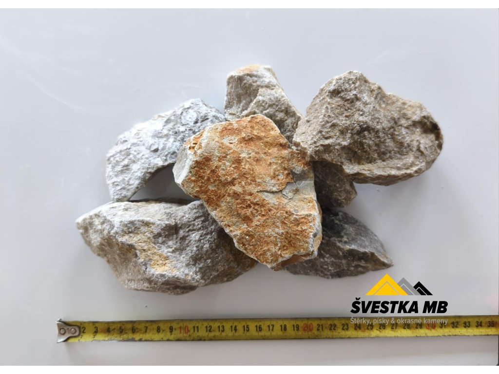 Štěrk (drť) bílošedé/bílobéžové barvy o velikosti 63-125 mm. Vhodný do záhonů - skalky, do rovnaného/sypaného gabionu.